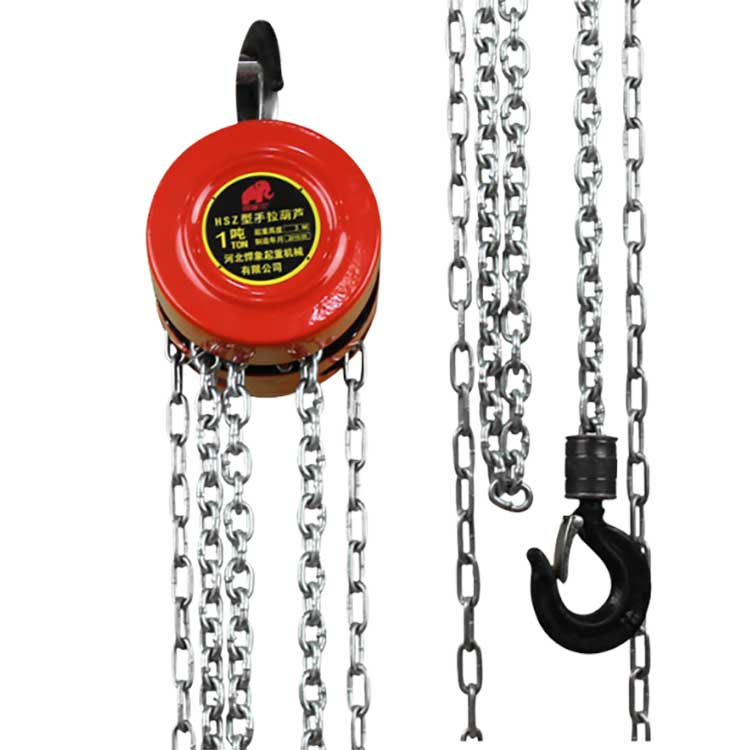 The HSZ type chain blocks are made of alloy steel and equipped with a G80 grade chain, treated with 20M2 medium-frequency quenching, resulting in low wear and corrosion resistance. The forged high-strength alloy steel hook ensures slow lifting to prevent overload. It has a wide range of applications, including factories, warehouses, docks, mines, and construction sites.