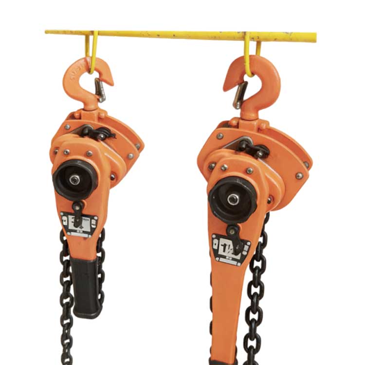 The VL lever hoist's lifting chain is made of high-strength alloy steel. The hook is heat-treated for high strength, and features double pawl brakes and an automatic brake for safety and reliability. 360-degree rotation facilitates operation in confined spaces with minimal operating force. It is lightweight, compact, and easy to carry.