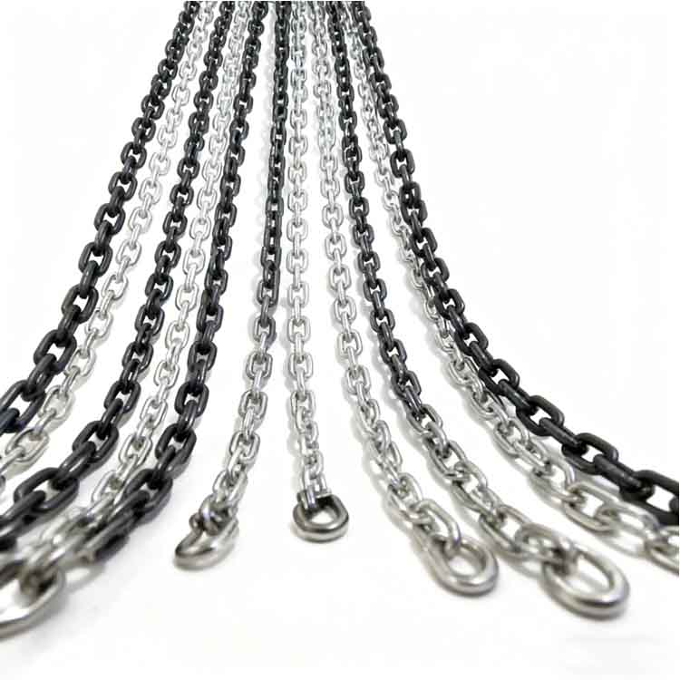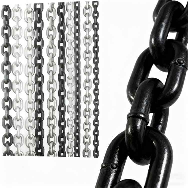Made of G80 grade manganese steel, it undergoes high-temperature quenching treatment, resulting in high strength, strong load-bearing capacity, and excellent resistance to tensile deformation. The chain links are welded smoothly, ensuring a robust structure. The surface is treated with rust prevention, making it corrosion-resistant and durable. It comes in a full range of specifications and supports customization to suit different lifting equipment and load requirements.